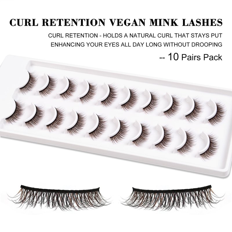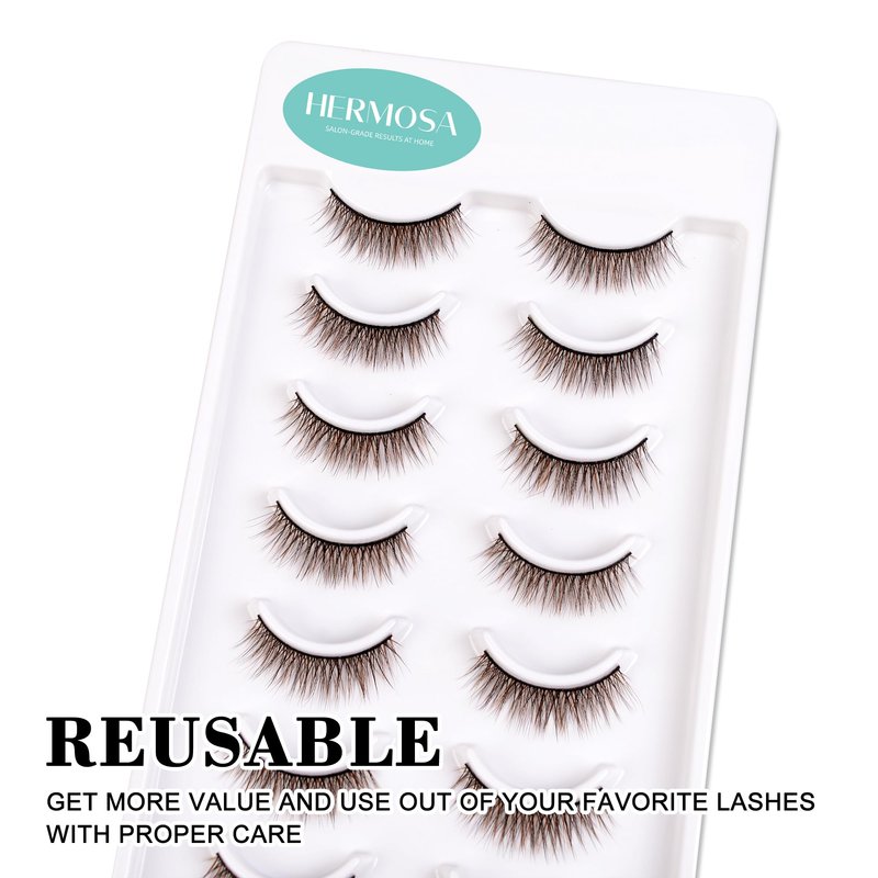 Hermosa Boston Brilliance Lashes with 10 Pairs Eyelashes Kit, Vegan Mink Materials of Cruelty Free, Reusable Strip Lashes with more than 20 times each pair. Doll Round Natural Looking HMN41-11