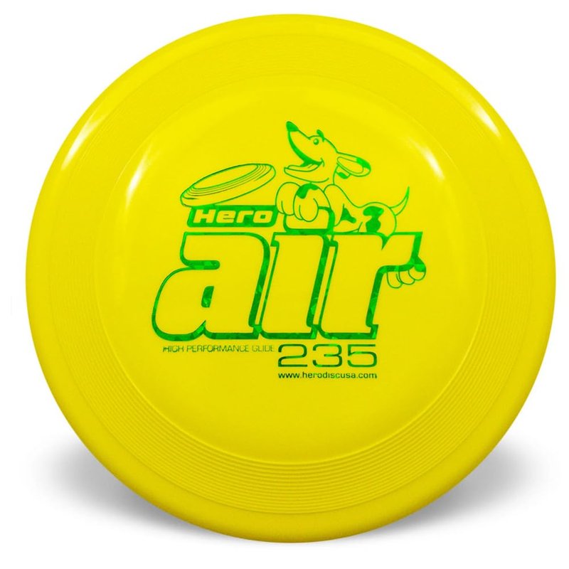 Hero Disc USA Hero Air 235 Dog Frisbee, Outdoor Dog Toy and Pet Frisbee, Lightweight Dog Flying Disc (Yellow)