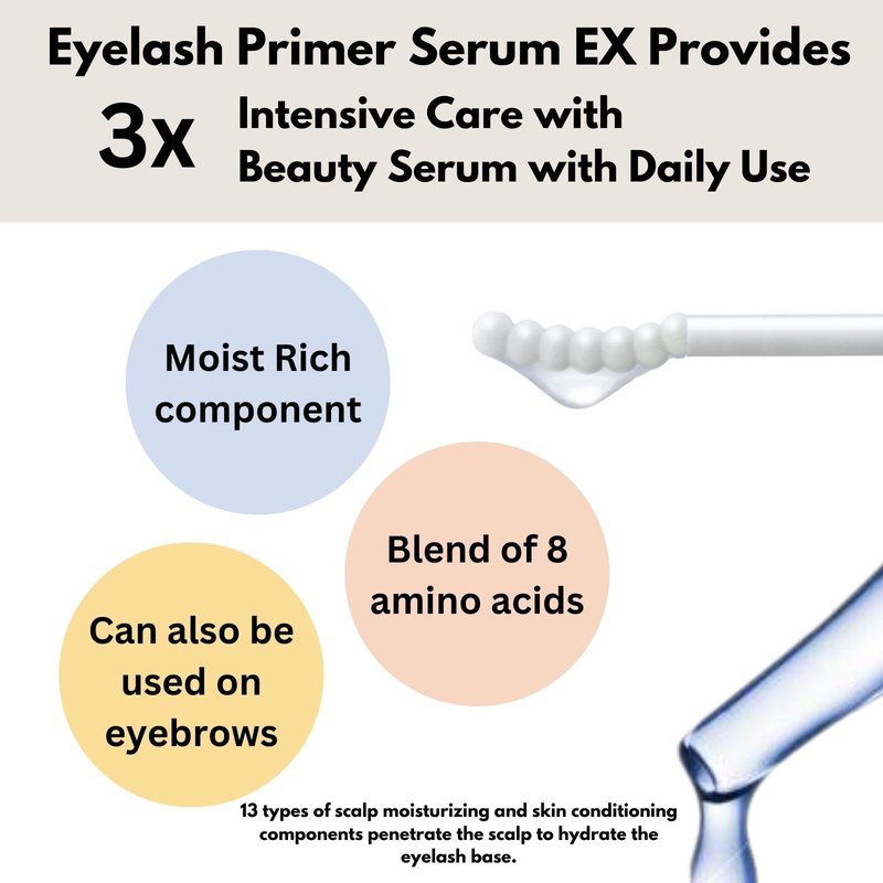 Designed with a lightweight, non-sticky formula, this serum evenly coats lashes for a smooth, mess-free application. Ideal for nightly use, it hydrates and repairs lashes to help reduce breakage and promote resilience over time. Whether applied on natural lashes or extensions, this primer enhances your beauty routine with premium Japanese quality. Ingredients: Water, Butylene Glycol, Glycerin, Carbomer, Triethanolamine, Phenoxyethanol, Panthenol, Methylparaben, Betaine, Alcohol, Sodium PCA, Sorbitol, Disodium EDTA, Hydroxypropyltrimonium Hyaluronate, Dipotassium Glycyrrhizate, Hydrolyzed Keratin, Serine, Glycine, Glutamic Acid, Alanine, Calendula Officinalis Flower Extract, Arginine, Lysine, Ethyl Ester of Hydrolyzed Silk, Morus Alba Root Extract, Swertia Japonica Extract, Threonine, Eriobotrya Japonica Leaf Extract, Pyrrolidinyl Diaminopyrimidine Oxide, Scutellaria Baicalensis Root Extract, Crataegus Cuneata Fruit Extract, Biotinoyl Tripeptide-1, Proline, Polyquaternium-51, Panax Ginseng Root Extract, Centella Asiatica Leaf/Stem Extract, Royal Jelly Extract, Propylparaben, Rosa Canina Fruit Extract, Soluble Collagen