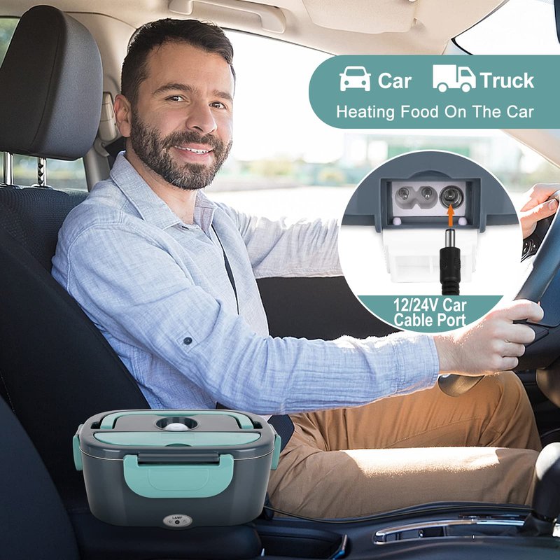 - 【3 IN 1 ELECTRIC LUNCH BOX】 No Need to looking for a microwave and wait in line for heating, now simply plug in and heat up your food with the electric heating lunch box at home/office or in car/truck using the 12V/24V/110V power cables. Keep constant heating when plugging in, always serving you a hot meal.
