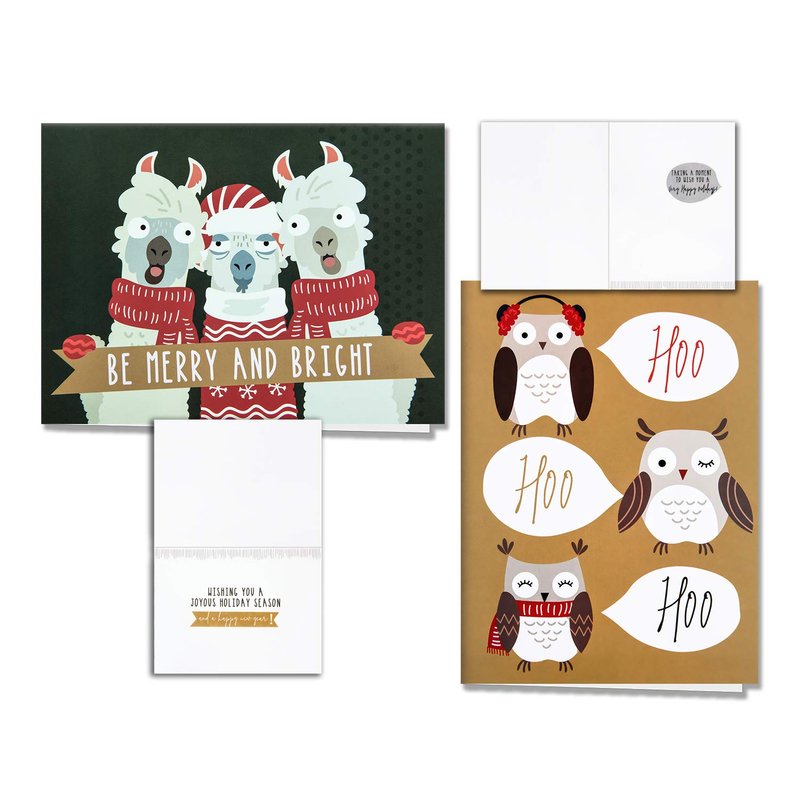 - UNIQUE AND FESTIVE. These fancy holiday cards feature stylish illustrations of cute animals that's sure to tug at the heart of the receiver and the giver. A mixture of sweet animals’ charm with the warm fuzzy feeling of Christmas. A worthwhile purchase for the holidays!