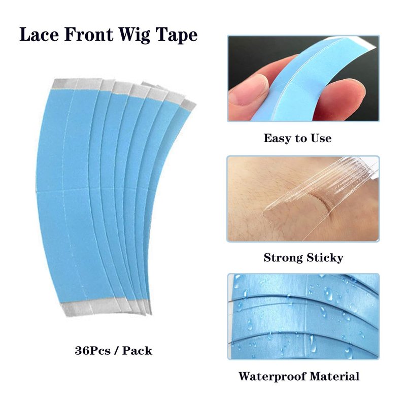HEVAYO KISS Lace Tape for Wigs 36Pcs Wig Tape Double Sided Ultra Hold Waterproof Lace Wigs Adhesive Tape Strips for Lace Front Wig Toupee #Blue