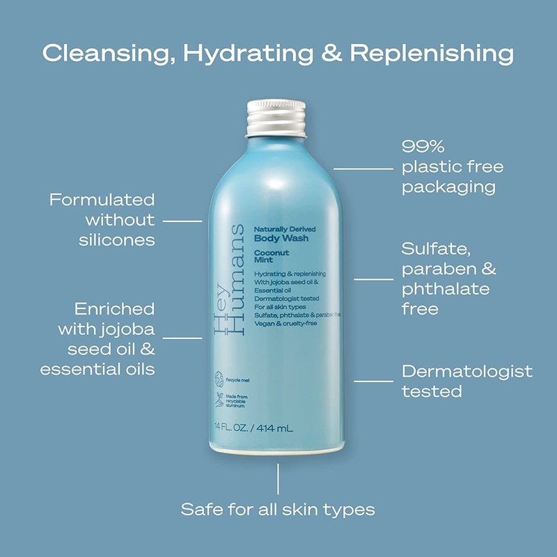 - Hey Humans body washes are everyone's body washes. Our naturally-derived, vegan body wash is made with jojoba seed oil and glycerin for a gentle, moisturizing shower gel you can feel good about.
