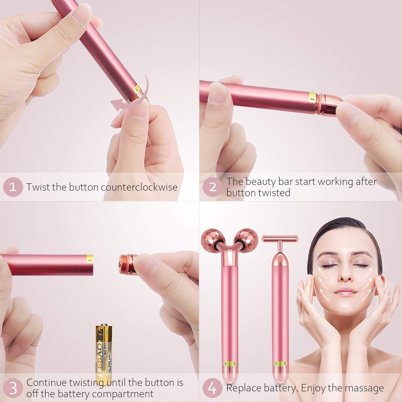 - PERFECT DESIGN: Electric 3D Roller Face Massager is with exquisite small diamond shape cut which makes the massaging more smoothly. T Shape Beauty Bar is 6,000 vib. per/min as same as the 3D roller massager, making it perfect for skin massaging