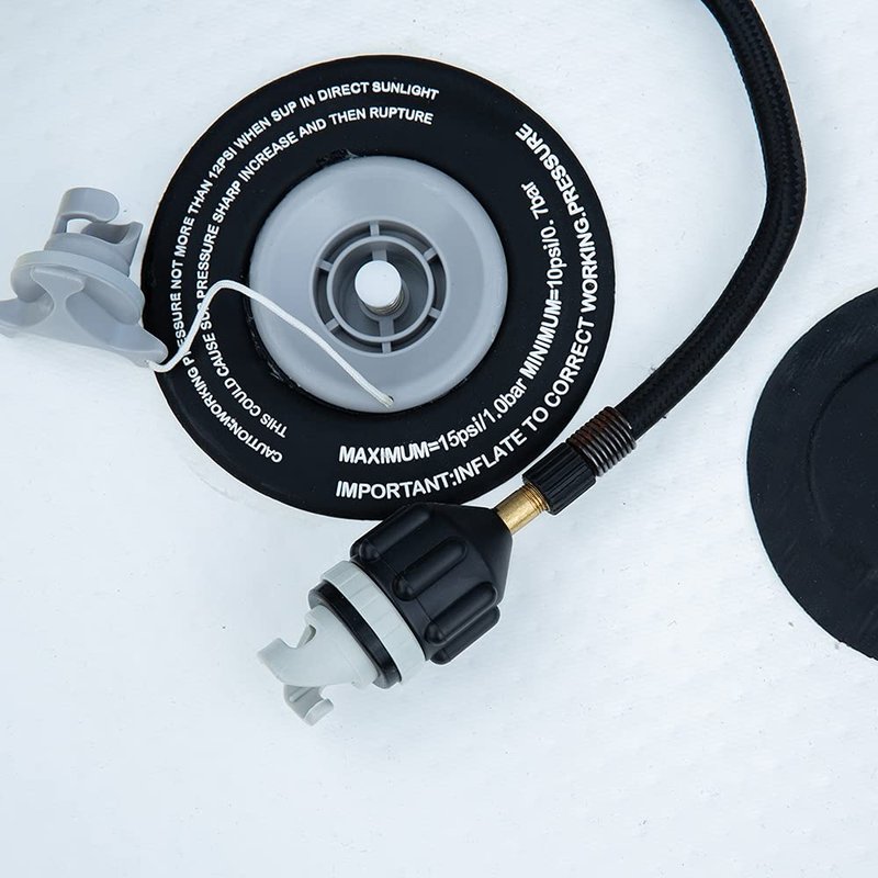 - Remove your SUP valve cap and ensure that the valve is sealed for inflation by rotating the central pin into the outer/closed position.Insert the valve adapter into the SUP valve the same way as you would insert the pump hose nozzle. Connect any standard schrader pump to the valve adapter fitting to inflate your board. Monitor board pressure frequently while inflating!