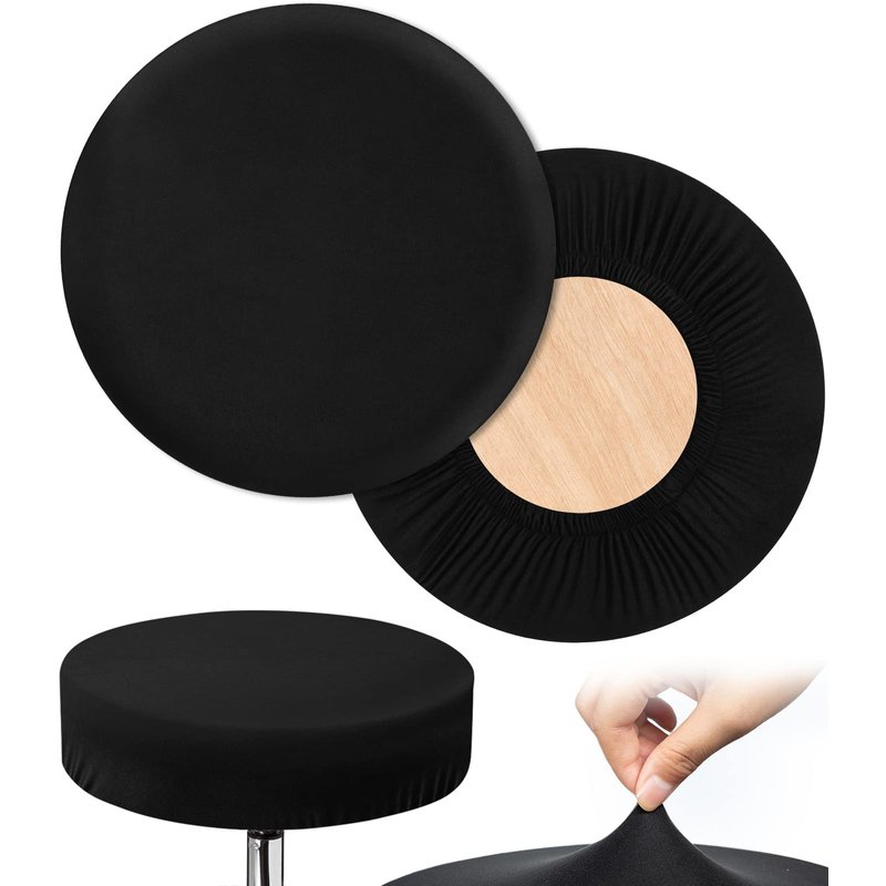 HFATMOS Black Bar Stool Covers Round, 2 Pcs High Stretchy Circle Stool Cover, Soft & Easy to Clean Chair Seat Slipcover Fit for Stool of Dia 14-17 Inch