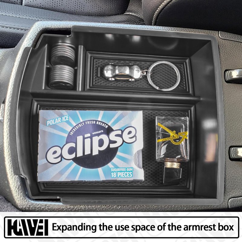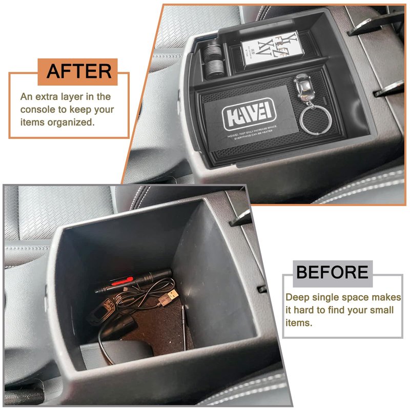 With its innovative design, this organizer effectively divides the armrest box into upper and lower layers, allowing you to make full use of the available space.