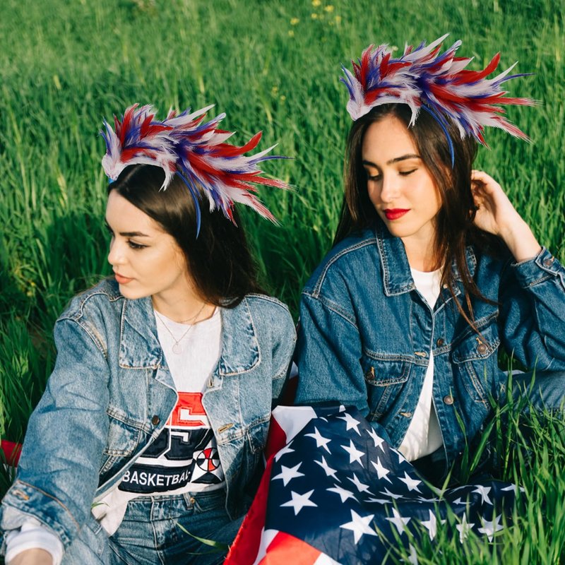 hhdatc 4th of July Womens Feathers Fascinator Headband Hat Party Costume,Memorial Day, Labor Day, Veteran's Day Red White Blue