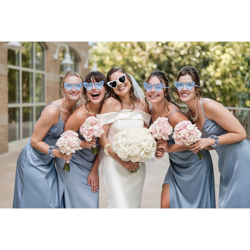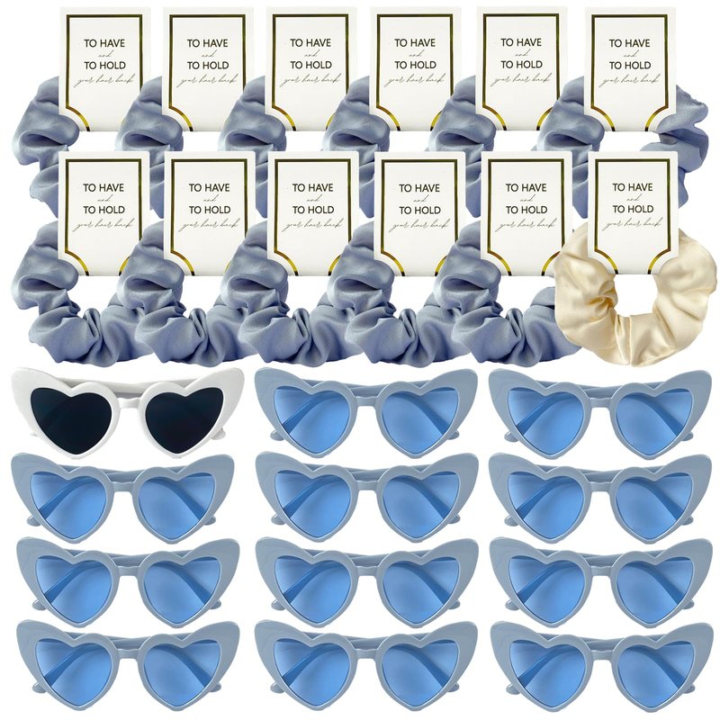 - Bridesmaids Favor Set: the package includes 12 pcs hair Scrunchies and12 pcs sunglasses gifts for the bridesmaid. 1pcs for you and 11 pcs for your friend, Perfect as bachelorette party favors and bridesmaid gifts!