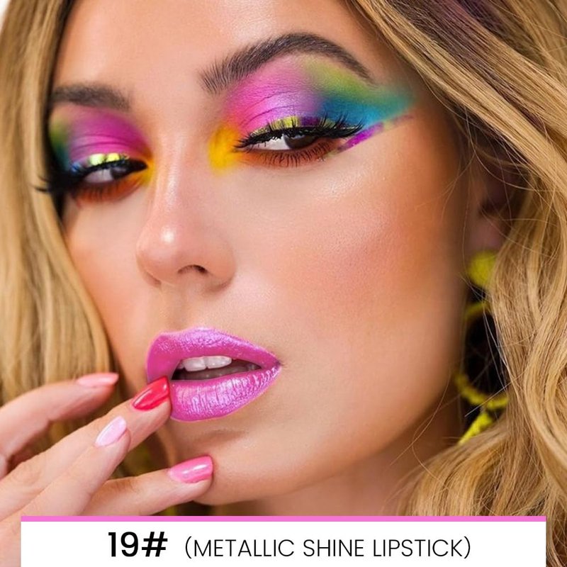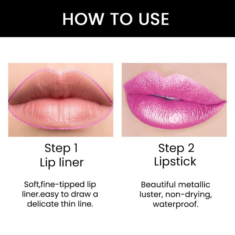 HHLTOH Vivid Fuchsia Metallic Shine Shimmer Lip Liner and Lipstick Combo Set Kit for Women, DNM Lightweight Hydrating Formula High Impact Full Coverage Lipstick and Lip Liner Makeup Stains Gloss, 19#