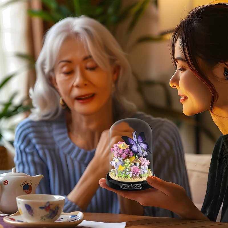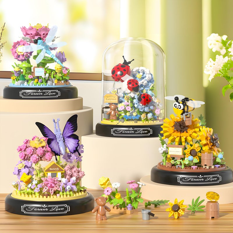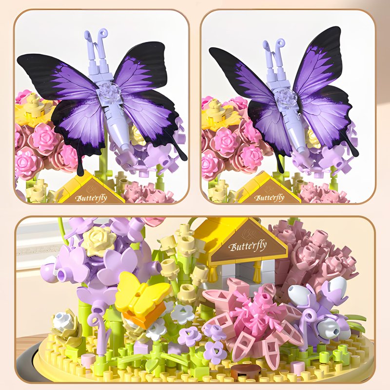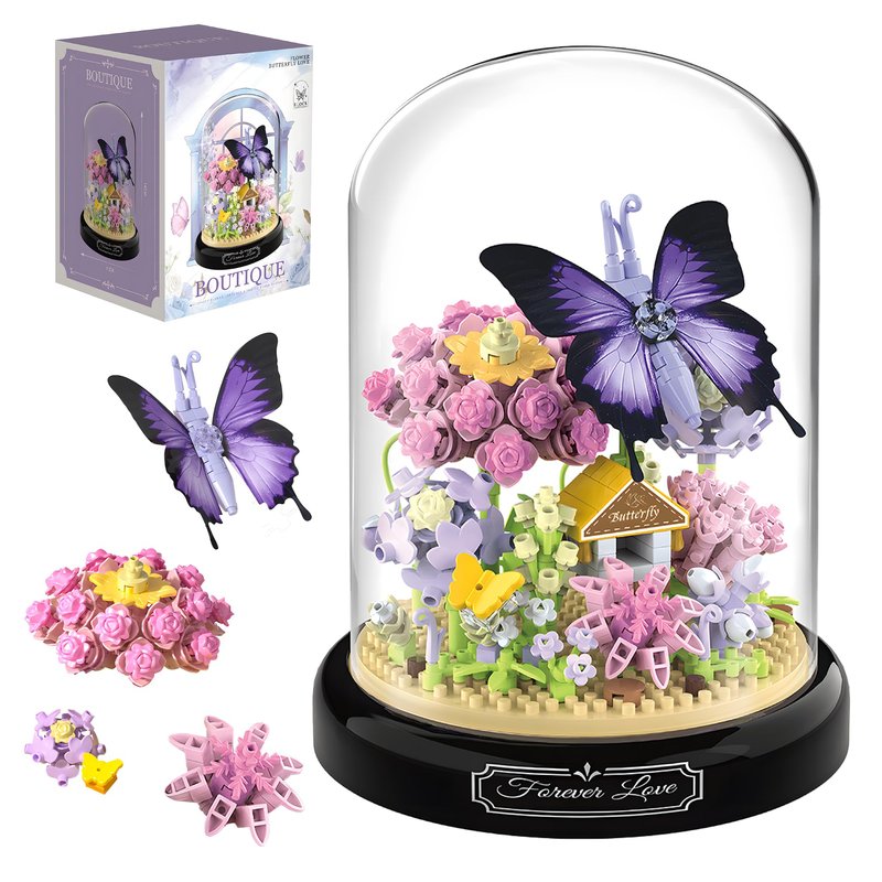 - Design: The Forever Flower Building Blocks Set vividly features butterfly fluttering among flowers, complete with a display base plate and dust cover
