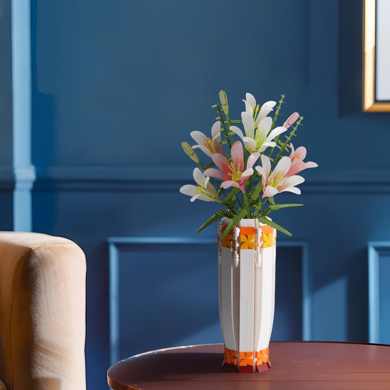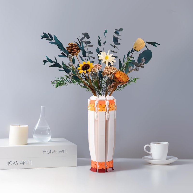- This orange vase suits various building block bouquets of roses, sunflowers, tulips, and more.