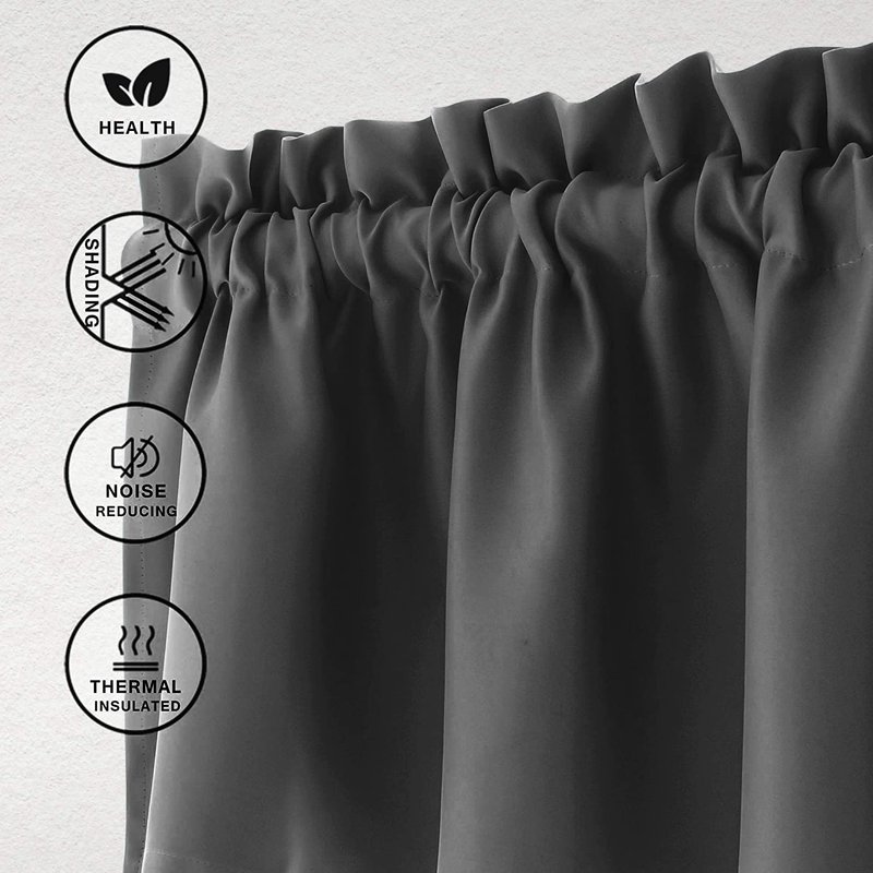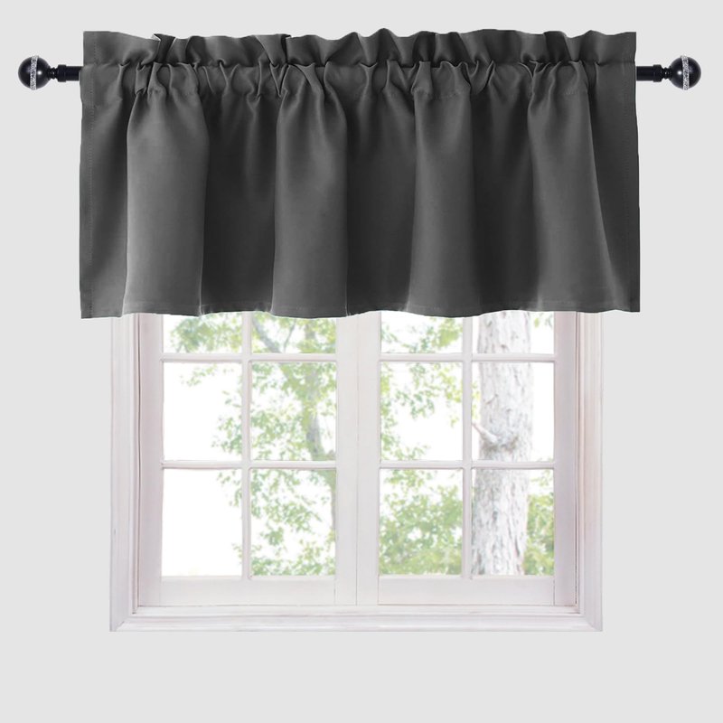 Hiasan Valance Curtains for Kitchen Blackout Thermal Insulated Solid Window Curtain Valance, Dark Grey, 42 x 18 Inches, 1 Panel