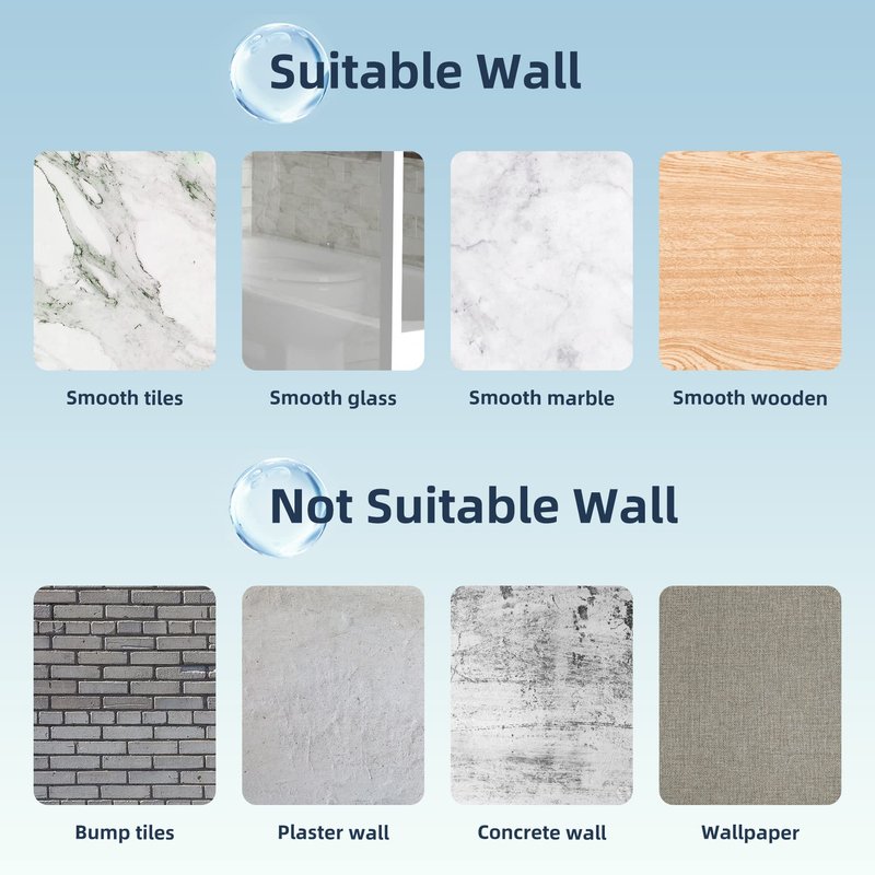 - Wide Scope of Application: Holder is suitable for smooth and no concave convex smooth surface such as ceramic tile, glass, smooth wood, smooth metal surface, etc. The waterproof shower head holder is not suitable for textured tiles ,concave tiles ,frosted glass or rough wood.