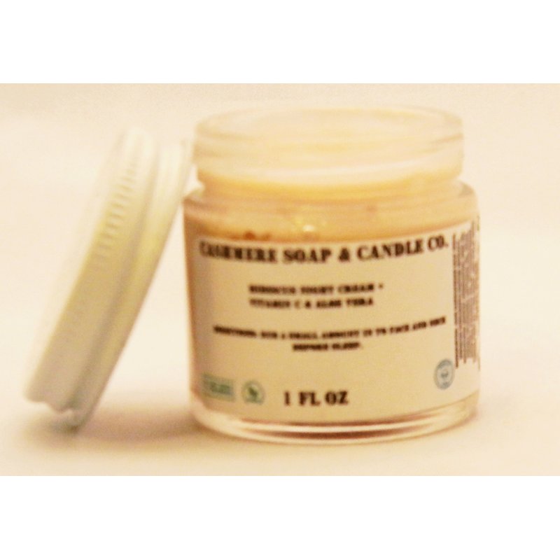Let the Flower Power of Hibiscus Beautify Your Skin Feel like you’re falling asleep in a garden full of fresh flowers every night when you use Cashmere Soap & Candle Co.'s Hibiscus Night Cream + Vitamin C and Aloe Vera before bed. When was the last time something that contained 75 different nutrients felt like silk against your skin? This luscious concoction is handmade using antioxidant-rich ingredients that will naturally nourish your skin and increase its elasticity. Your skin will enjoy a youthful boost that leaves it radiant and fresh! This natural formula is also great for stretch marks. People are buzzing about this night cream because of the following: * Made using an organic and vegan formula. * Contains “super skin” ingredients like hibiscus extract, aloe vera and vitamin C. * Fights wrinkles, dark spots, irritation, inflammation, sun damage and other telltale signs of aging. * Rich in antioxidants, vitamins and minerals that help fight free radicals and other damaging agents. * Made in small batches to guarantee quality. * 100% satisfaction guaranteed. You can finally get your hands on a cream that will make your skin tone capture the beauty of spring's first blush! This night cream offers the intense moisture your skin craves. It helps to boost collagen production, fade those annoying post-breakout red marks and soothe inflammation. It is a great choice if you're looking for a purifying cream that will help you battle acne and blemishes. In addition, it will actually boost the effectiveness of your daily sunscreen. We've lovingly paired this cream's key ingredients with raw, unrefined shea butter, organic virgin-pressed coconut oil and argon oil. This smooth, creamy concoction is ideal for all skin types. It comes in the following sizes: