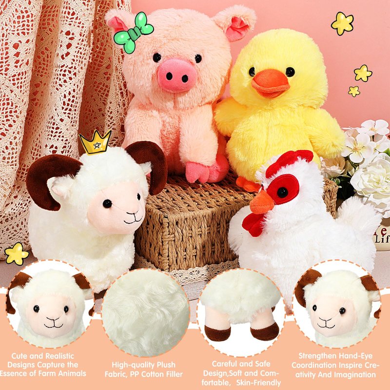 - Farm Plush Animal Set: you will get 7 farm stuffed animals, which include plush cow, plush horse, plush sheep, plush rooster, plush dog, stuffed duck and plush pig; Various styles of plush animal toys can satisfy your personal preference and make them more active