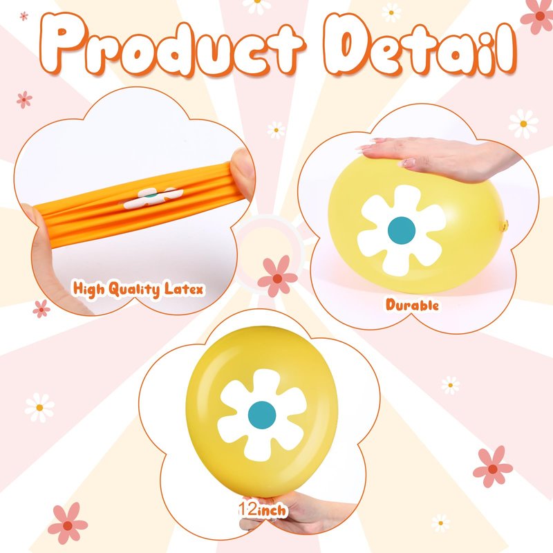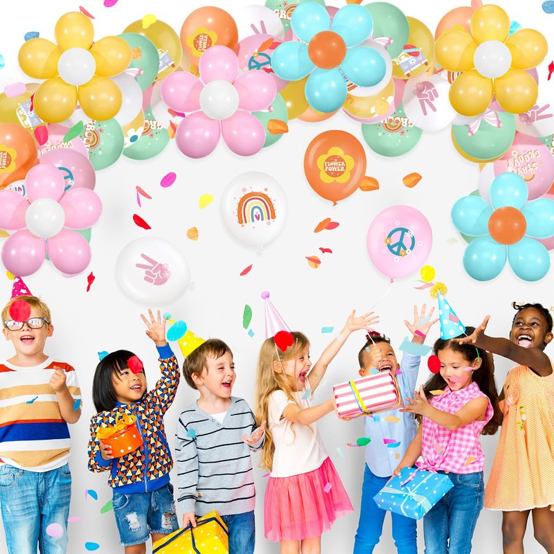 - Daisy Garland Balloons: includes 36 solid color balloons for making daisy garlands to match any party theme