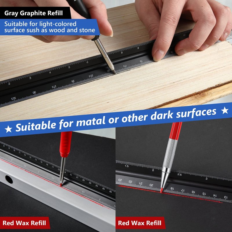 - Good Combination: you will get 4 pieces of solid mechanical carpenter pencils with 40 pieces of marker refills, 1 piece of carbide scribe tool and 1 piece of automatic center punch tool; Multiple mechanical pencil marker marking tools can meet your different woodworking marking needs