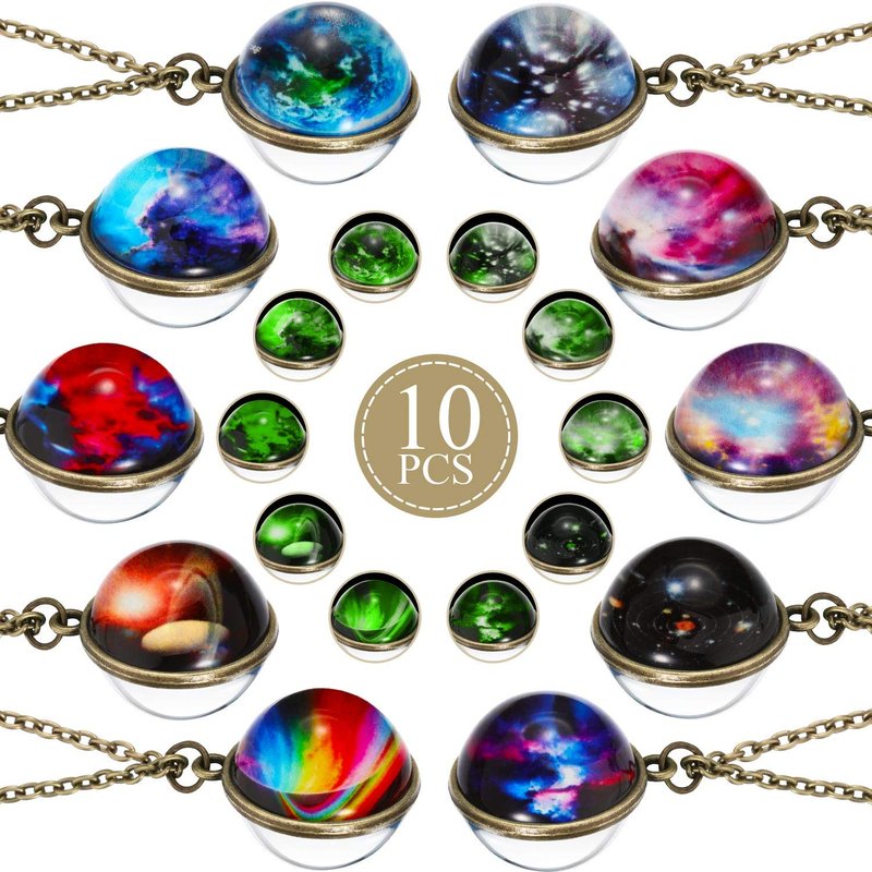 Hicarer 10 Pcs Galaxy Necklace Party Favors Outer Space Necklace Galaxy Ball Pendant Necklace Universe Astrology Themed Party Favors for Girls Kids Birthday Party Gifts Goody Bag Fillers