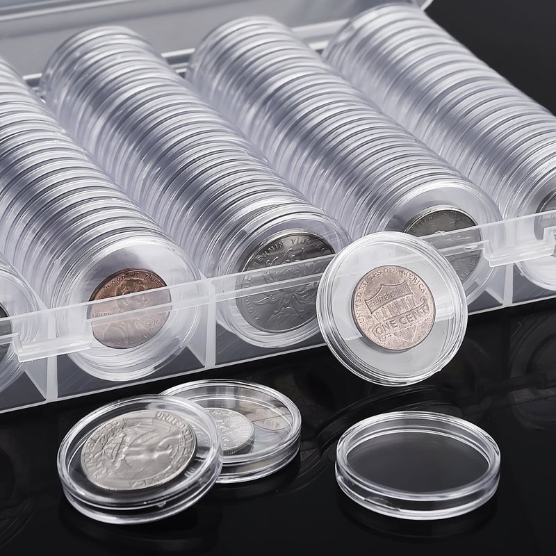 - Material: made of thickened plastic, durable coin capsules; Feature: safety round corner design, smooth to touch and hold; High transparent: easy to see things inside