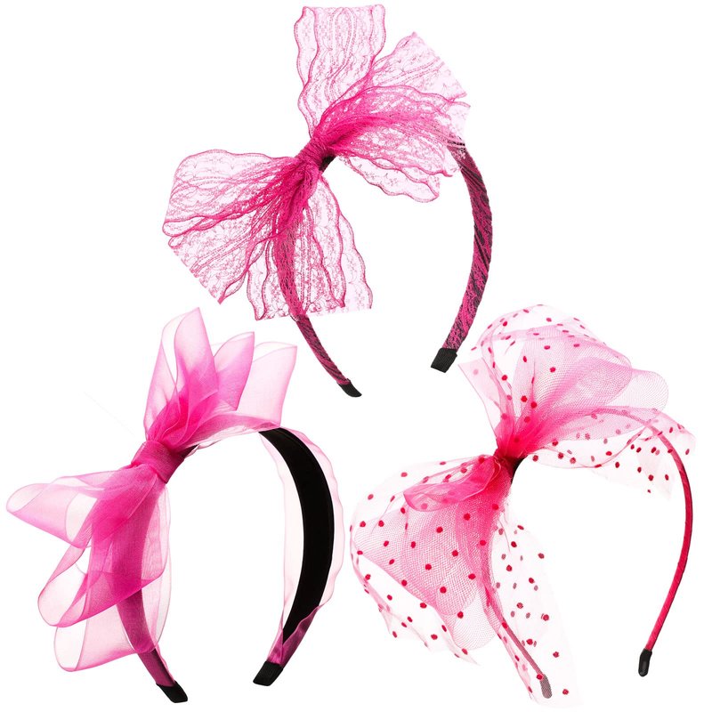 Hicarer 3 Pcs 80's Lace Headband with Bow Costume Accessories for Retro 80s Clothing Theme Party Accessories Neon Lace Bow Headband for Women(Rose Red)
