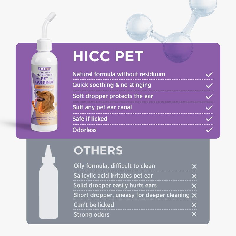 HICC PET Dog Ear Cleaner - Dog Ear Inflammation Therapy with 0.012% Hypochlorous Acid for Itch Relief, Soothe Ear Inflammation, Removes Wax, Odor, with 30 Cotton Swabs, 4 Fl oz