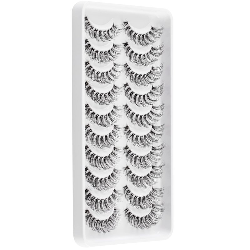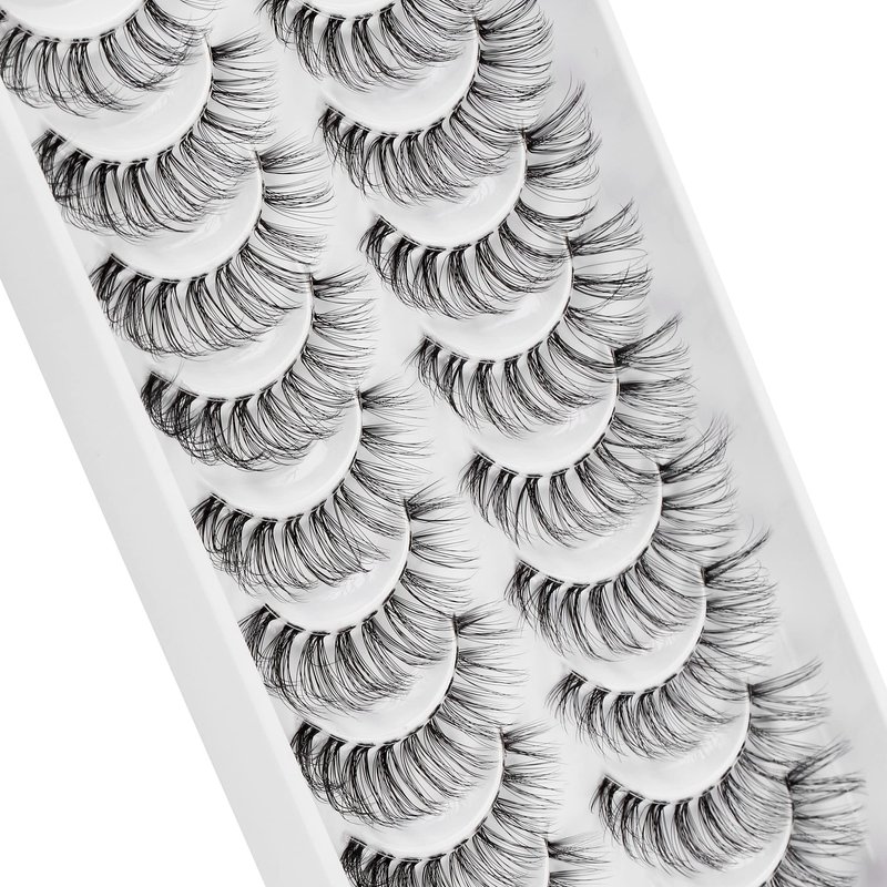 - 1 High Quality 3d false eyelashes: Made of superior synthetic fibers material. We adopt the advanced ultra thin 0.05mm thickness synthetic fibers updated with a silky-soft finish.Russian false eyelashes look like Lashes Exension - Natural look daily eyelashes 10 pairs wispy clear band lashes pack.The eyelashes give you a natural fluffy look,make your eyes more beautiful.