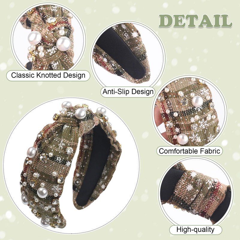 - 【Unique Christmas】-- Featuring Christmas stripes and plaid patterns adorned with rhinestones, pearls, and 3D snowflake, Christmas tree, and Santa Claus, this headband exudes festive charm