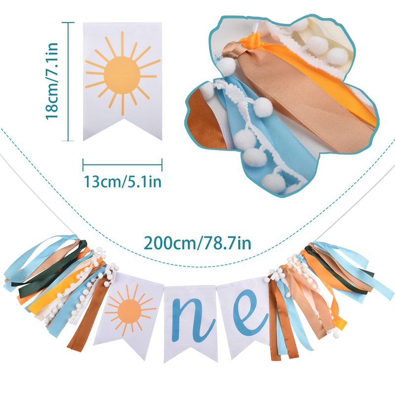 Sun birthday party decorations have a unique and bohemian perfect look, can be an ideal gift for friends loved ones colleagues who have a birthday, decorate and decorate the birthday party with this high chair ribbon garland.