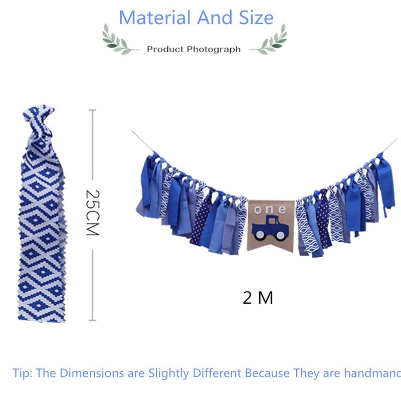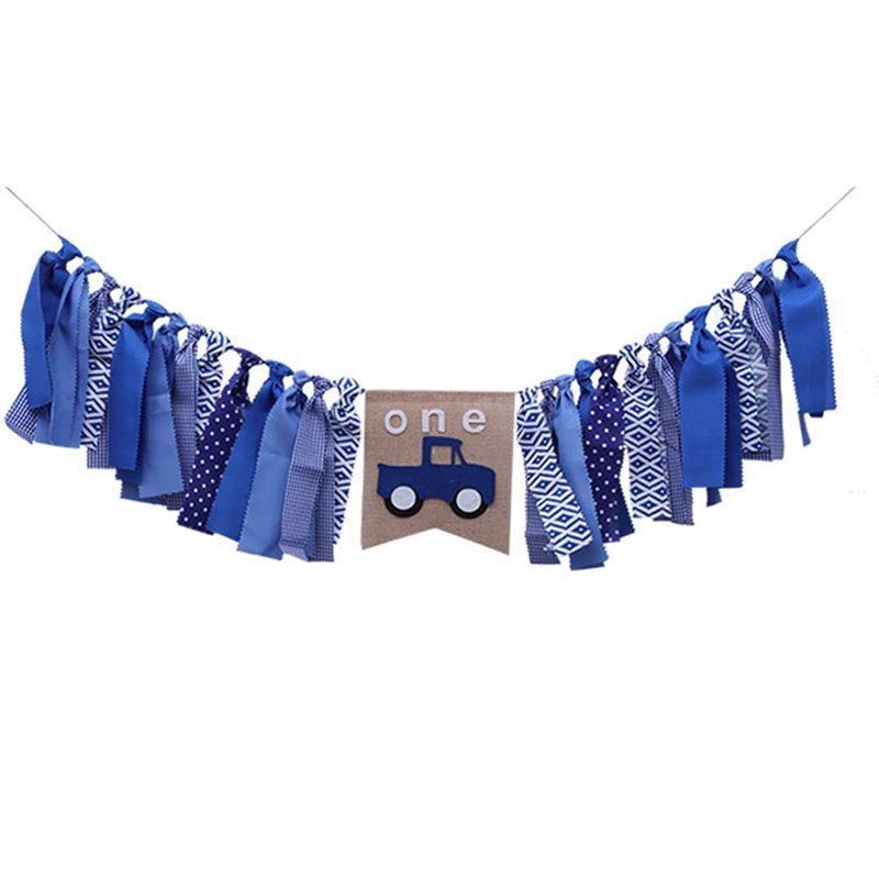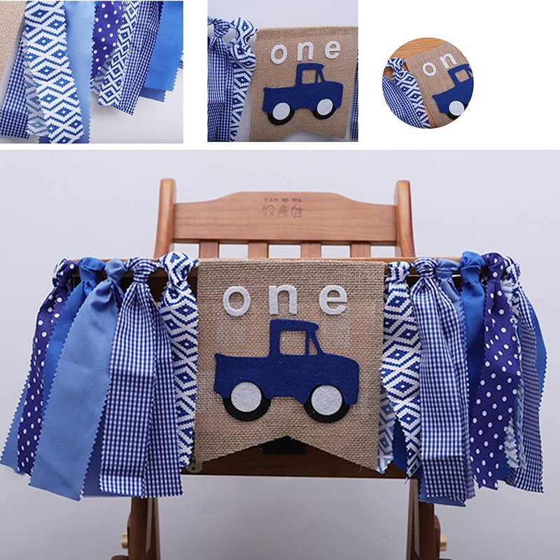 High Chair Pull Flag Blue Truck Logo 1 Year Old Birthday Banner Boy Baby Birthday Party Theme Decoration Props Background for Shooting Children Birthday Commemorative Gift