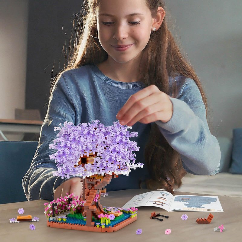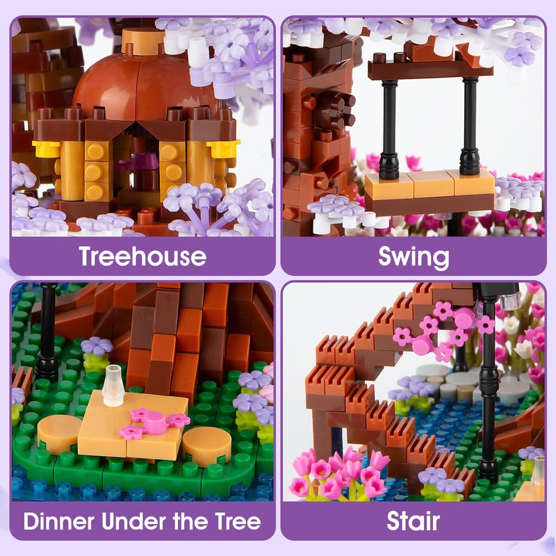 - 【Exquisite Cherry Blossom Sets】2200 pieces micro blocks, it is more challenging and difficult than the building blocks of traditional size, and requires more patience and carefulness of people. Hidden under the cherry blossoms is the tree house castle. Climb the stairs of the tree house and enjoy the beautiful scenery at the high platform in the middle of the tree. Suitable for 14+ adults and girls
