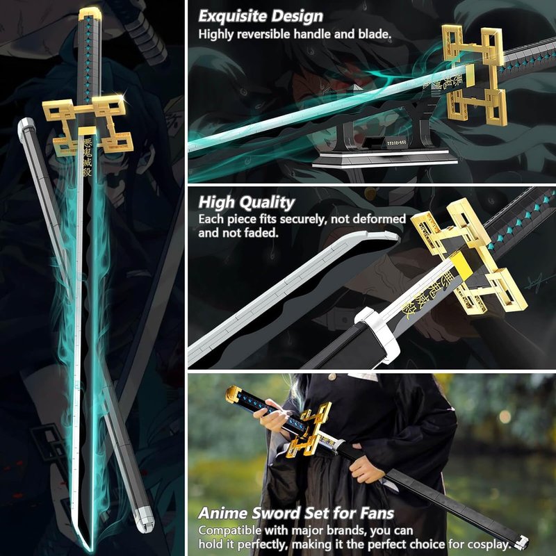 HIGH GODO Demon Slayer Sword, 40in Tokitou Muichirou Sword Set with Scabbard and Stand, Cosplay Anime Katana Sword Building Blocks, Collectible Gifts for Kids and Adults 8-12 (771 Pieces)