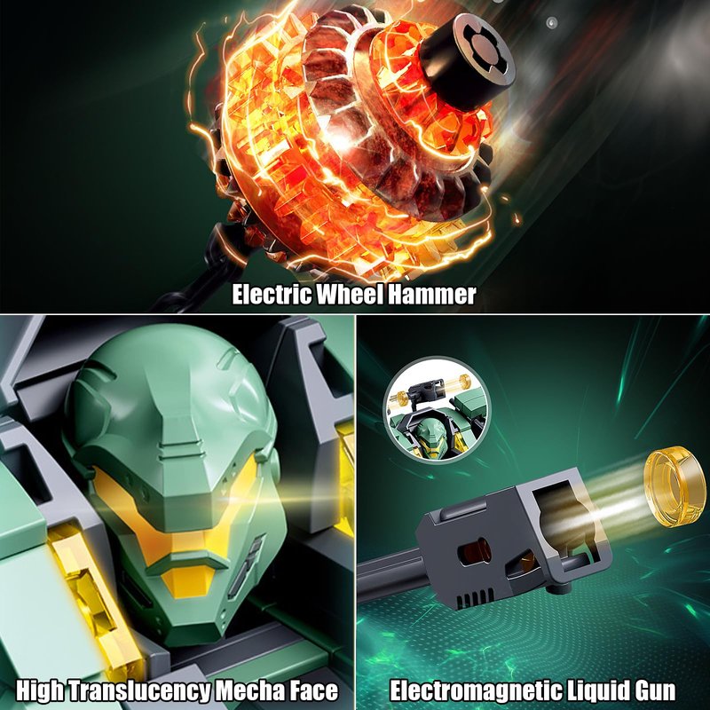 - Mech Building Kit: This mech model set has 542 pieces bricks.Let you get into the world of mechs with destroy warrior building kit, which inspired from a game.With electric wheel hammer,high translucency mech face and electromagnetic liquid gun,offering an good building experience.
