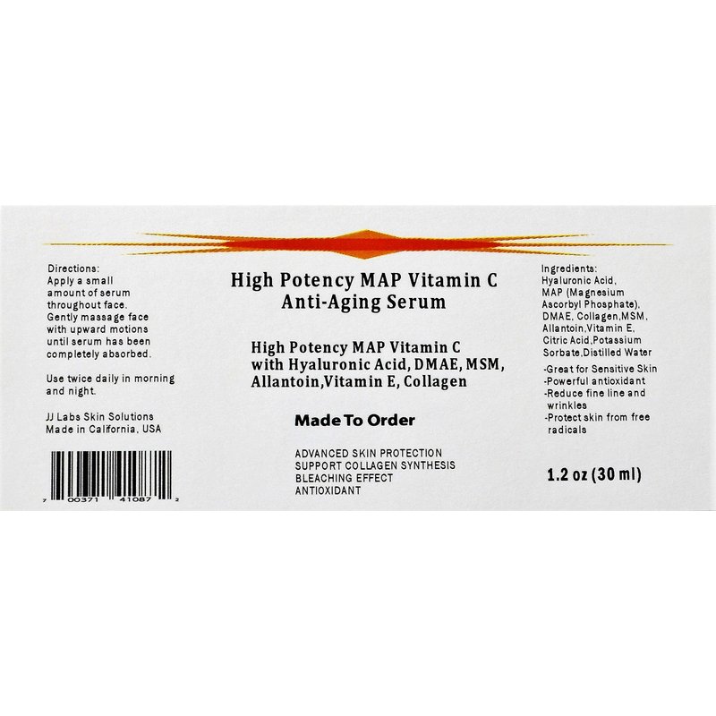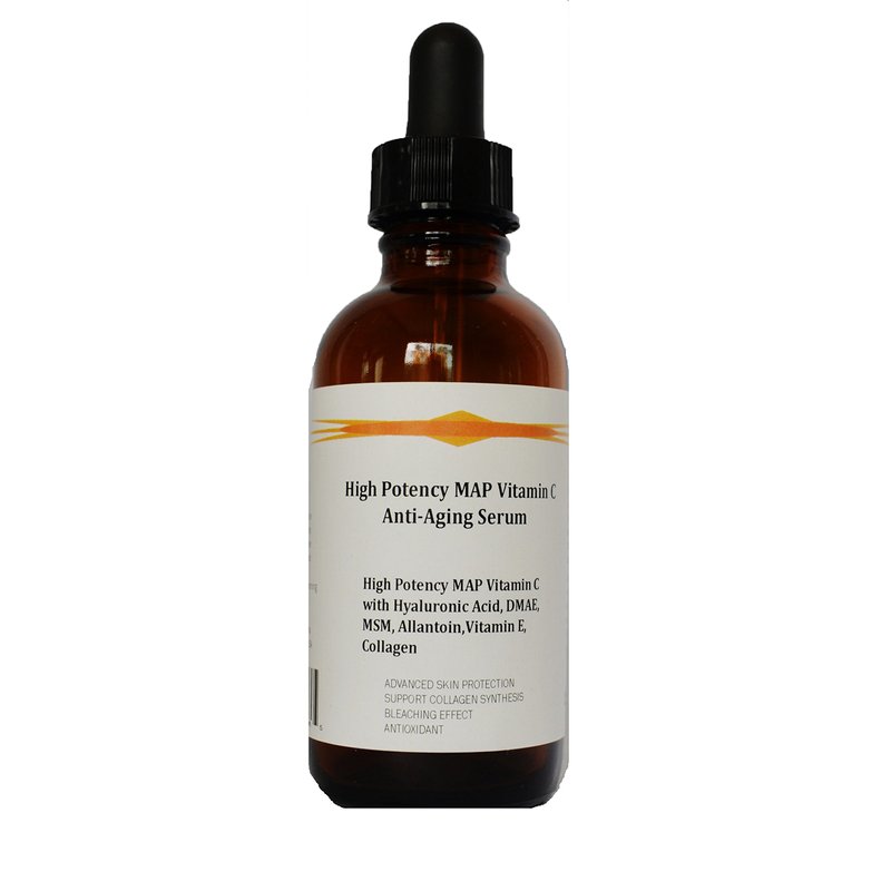 High Potency 15% MAP Vitamin C Serum with Pure Hyaluronic Acid, DMAE, MSM, and Allantoin (1.2oz, Dropper Dispenser)