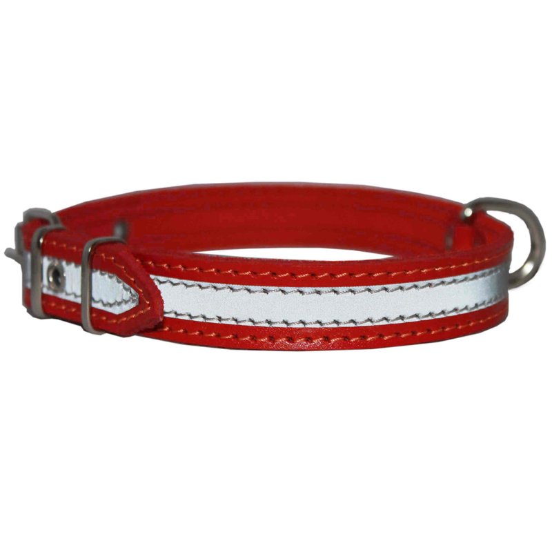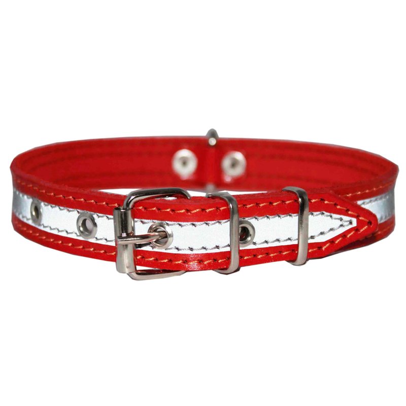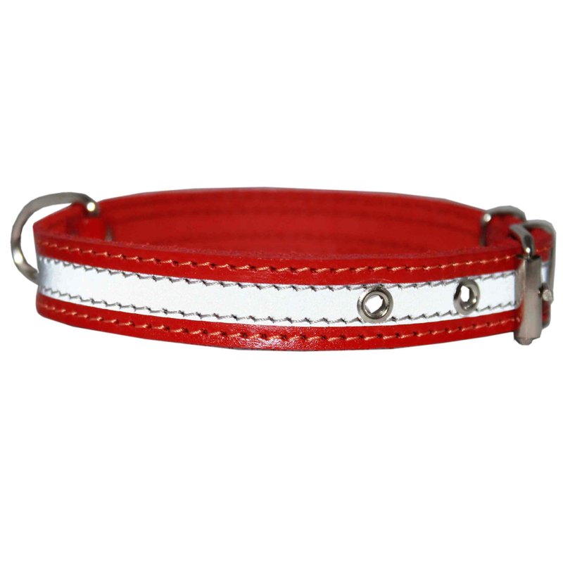 - Very comfortable and pliable dog collar made of thick genuine leather with stitched on reflective stripe - effective way to enhance visibility at night.