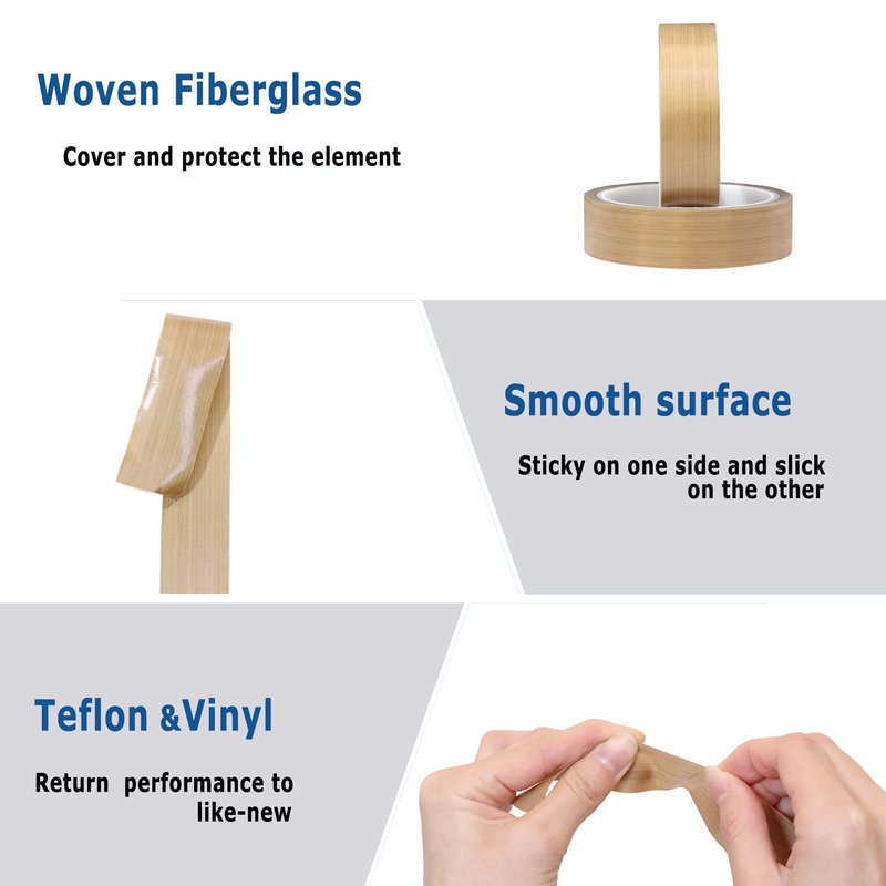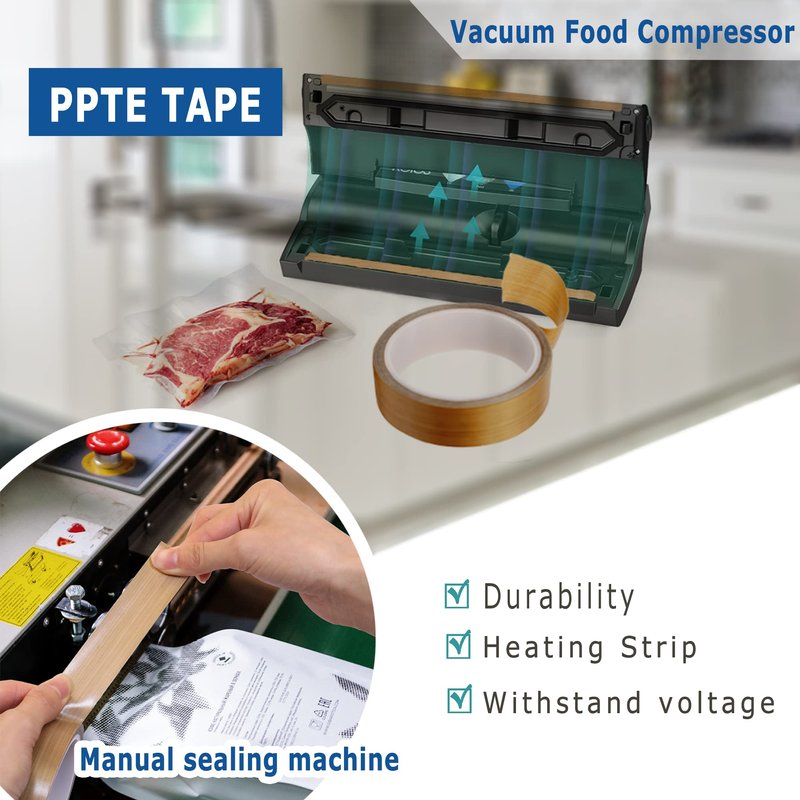 - 【Good security】In order to ensure the normal operation of heating elements and good sealing performance of sealing machine. In case of warning, discoloration or imperfect sealing, the old PTFE tape should be replaced in time for good use.Just need to tear off the tape and stick it in that place(Many times, you may need to clean it up first to keep the place clean.). Over the wire for vacuum sealers, under the wire for impulse sealers