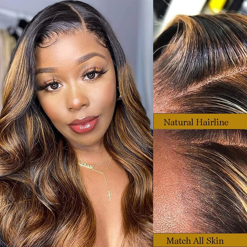 - Body Wave Highlight Lace Frontal Wigs Lace Structure: 13x4 HD Lace Front Wigs Human Hair, Free Part Big Lace Parting Space. Can Make Middle Part and Side Part.
