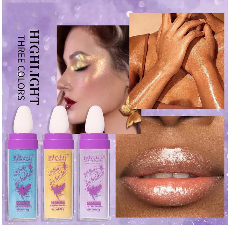 - 【FAIRY MAKEUP POWDER STICK】You can highlight directly on the areas that need highlighting. Can be used on the face, collarbones, eyes, lips, arms and other parts of the body to make you shine at party events!