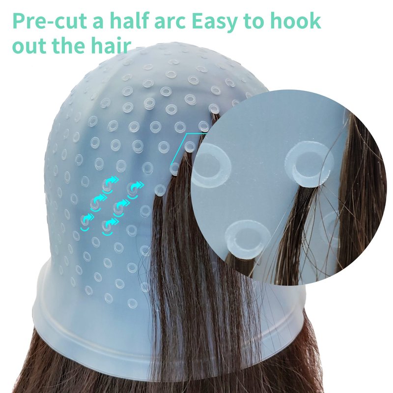 - HALF ARC HOLES HIGHLIGHTING CAP The highlighting cap with alreadly holes in it,you needn't waste your time to make holes.This cap design with half arc holes,no leakage,can freedom partially bleached is its features.You can according your interest to DIY your hair color.PLEASE USE THE CORRECT STEPS TO USE OUR HIGHLIGHTING CAP.Remove the cap with bleach still on hair,and then wash your hair.