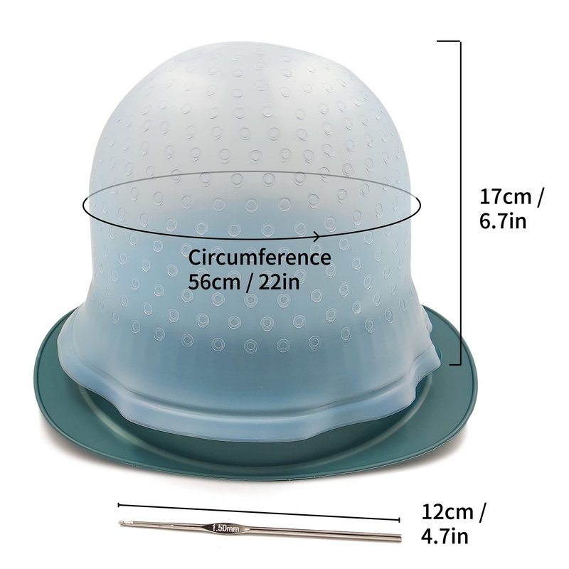 Product DescriptionUsage:Please kindly read the usage Step by Step when finishing your hair highlights.Firstly you need to pick up your highlighting cap with your both hands from the bottom of the cap edge.Secondly,after picking up your highlight cap you can begin to wash your hair.Package Quantities:1 x Highlighting Cap,1 x Metal HookHighlight Cap Material:SiliconeSize:Circumference approx. 56 cm/ 22 inches, Height approx. 20 cm/ 7.9 inchesEasy to use:Choose one color you like and order.Usually you will recieve it in the next day.Get a highlight cap,you can use it directly,because the cap with holes in it,you use the hook to go through your hair to make highlight is ok.You see,it is so easy to DIY your hair color by yourself