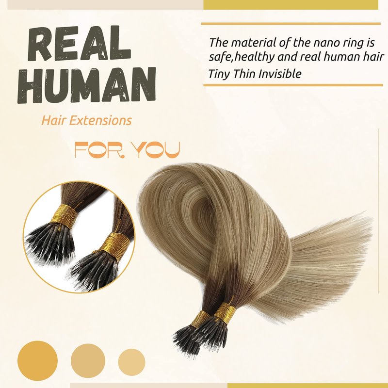 - ➤ 100% Remy Extensions Human Hair :Nano Tip Hair Extensions Adopt 100% human hair materials, NO mixed animal or synthetic hair.No tangles, no shedding, no split ends in our hair,The microbeads have metal-free silicone rings inside that hold the beads and hair in place to avoid falling out and won't hurt your own hair.