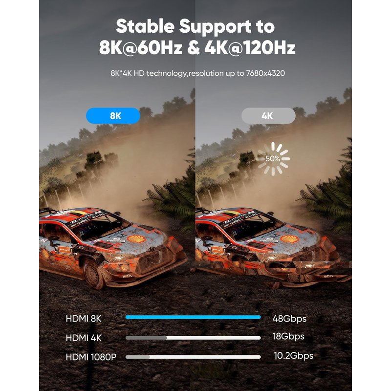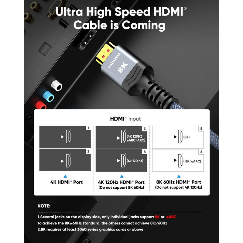 - 【Top Technology----8K@60HZ】 This 8K Ultra High Speed HDMI Cable uses the most cutting-edge technology, is compatible with 8K@60HZ and 4K@120HZ, clearly displays every particle, and accurately processes every signal source. With 8K HDMI's unique dynamic HDR and 12 Bit color processing technology, each scene of the video is every frame, with more ideal depth, brightness, detail, contrast and wider color gamut.