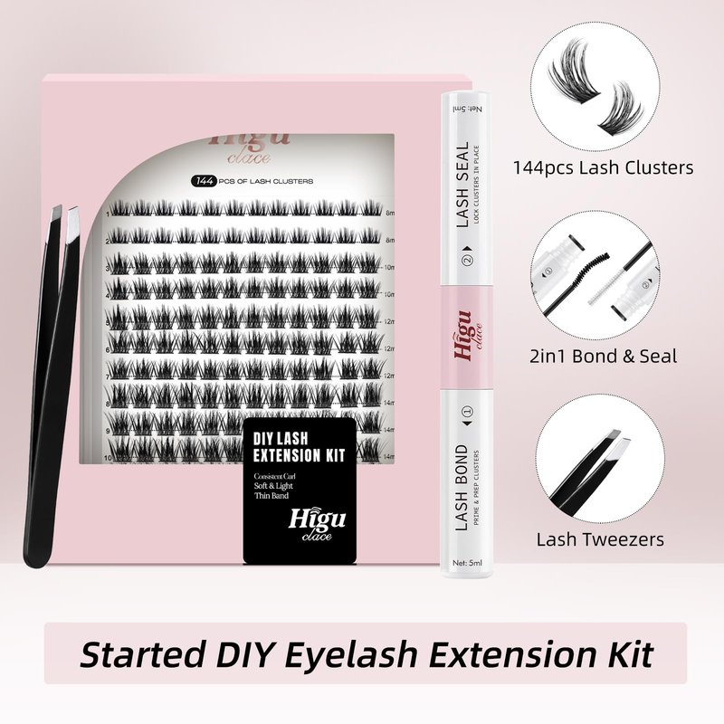 - 🎁 DIY LASH EXTENSION AT HOME: With Higu clace lash bond and lash applicator, you can make cluster lash extensions at home by yourself. You can change different styles according to your preferences. You can also remove the cluster individual lashes at any time and make new styles at any time. You don't need to go to the salon to spend exorbitant prices. The best choice to save you money and time!