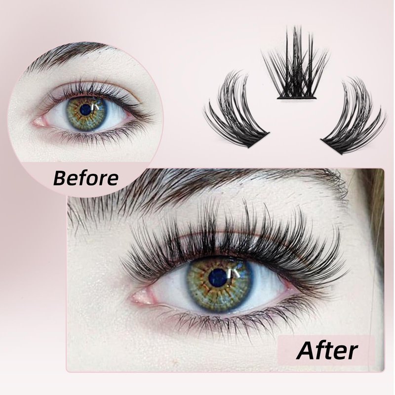 - 🎁 HIGH-QUALITY FIBER: Lash cluster are made of high-quality fibers, eyelash extension clusters knot-free, vegan, cruelty-free. The eyelash cluster are soft and light, and easy to apply, comfortable and non-irritating to wear. The roots of cluster eyelashes are treated with professional technology, flat, beautiful. Don't worry, these individual cluster lashes are very beautiful and fashionable.