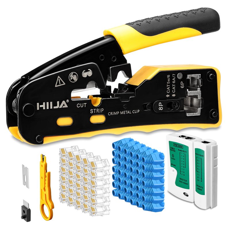 Hiija RJ45 Crimp Tool Kit Pass Through Ethernet Crimper Kit All-in-one Ratcheting Modular Data Cable Crimper Kit