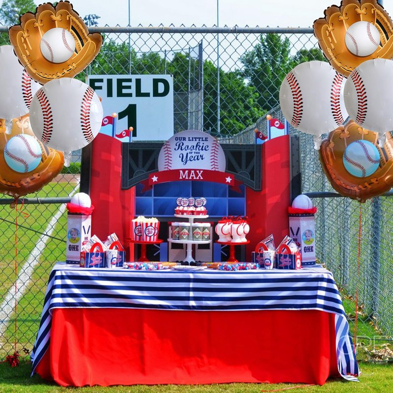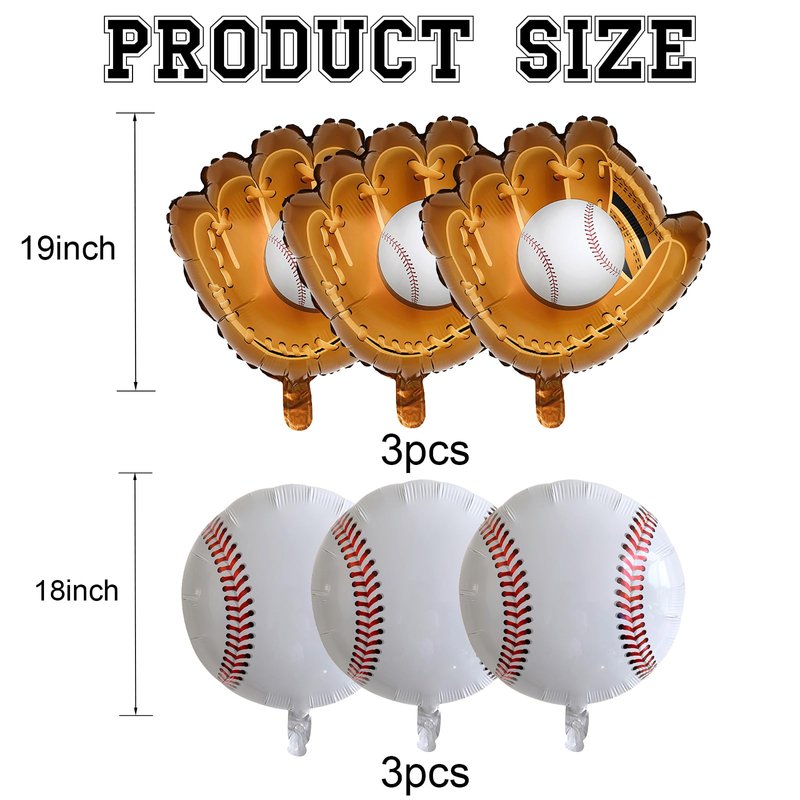 - Baseball Foil Balloons: This set includes 3PCS 18-inch baseball foil balloons and 3PCS 18-inch baseball glove balloons. The realistic prints on the 4D round shape make the balloons look especially like real baseballs, giving people the feeling of being in a baseball game. A must-have baseball birthday party decorations for baseball-themed parties.
