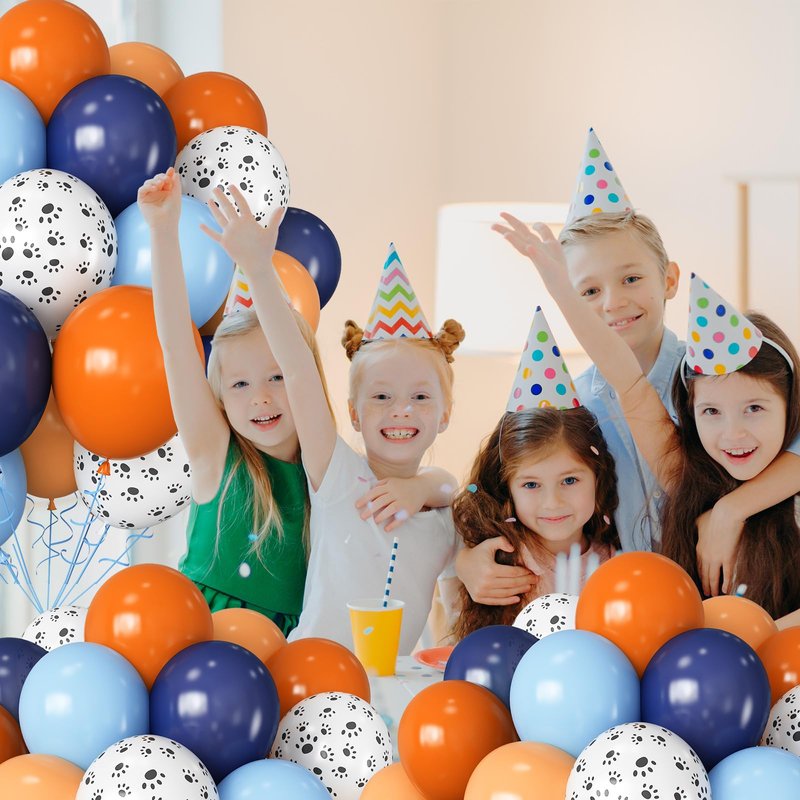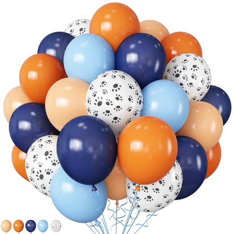 - Orange and Blue Balloons: The blue balloons paw includes Dark Blue Balloon balloons (12 in; 10pcs); pastel blue balloons (12 in; 15pcs); orange balloon (12 in; 15pcs); beige balloon (12 in; 10pcs); paw print balloons (12 in; 10pcs); Whether indoors or outdoors; this set of blue and orange balloons can add a romantic; warm; and unique atmosphere to your blue birthday decorations boy