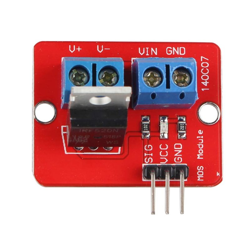 This little module is a breakout board for the IRF520 MOSFET transistor. The module is designed to switch heavy DC loads from a single digital pin of your microcontroller. Its main purpose is to provide a low cost way to drive a DC motor for robotics applications, but the module can be used to control most high current DC loads. Screw terminals are provided to interface to your load and external power source. An LED indicator provides a visual indication of when your load is being switched.