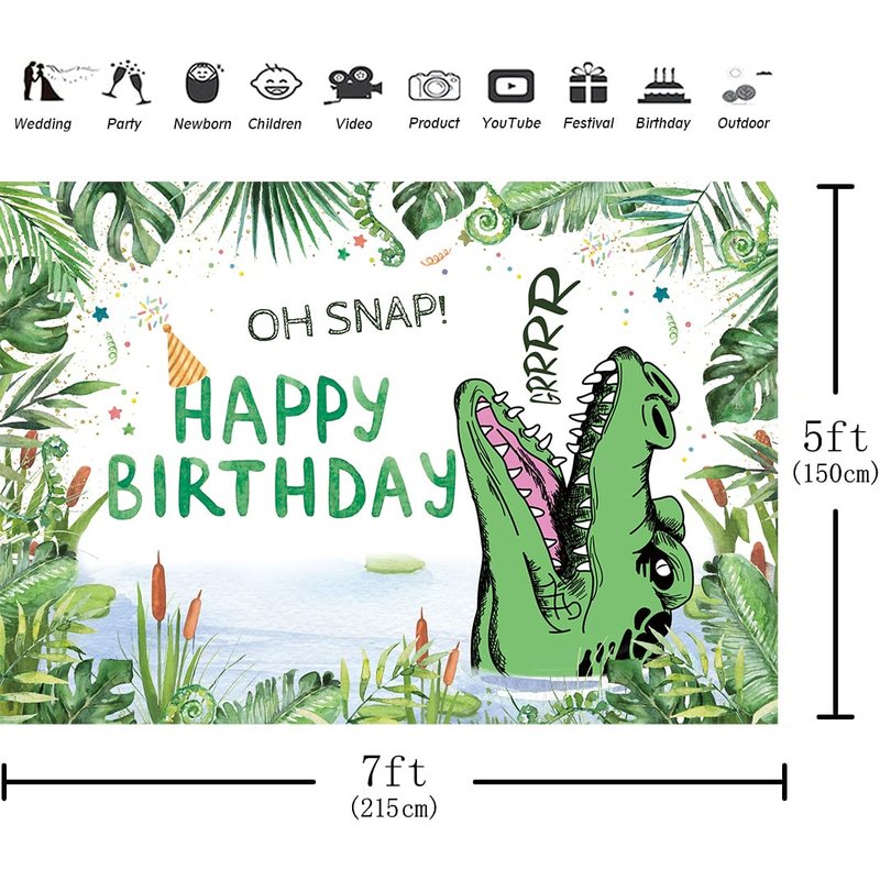 Hilioens 7×5ft Crocodile Birthday Backdrop Cartoon Crocodile Kids Boys Birthday Party Decorations Green Leaf Oh Snap Background Banner Supplies