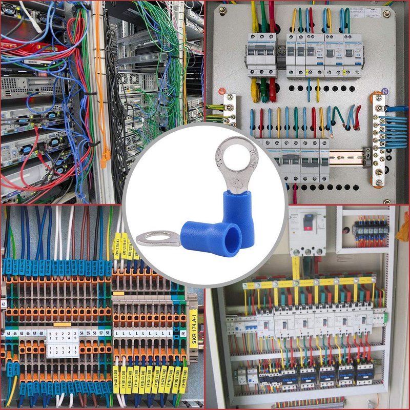 Hilitchi 100Pcs 16-14AWG Insulated Terminals Ring Electrical Wire Crimp Connectors (Blue, M5)